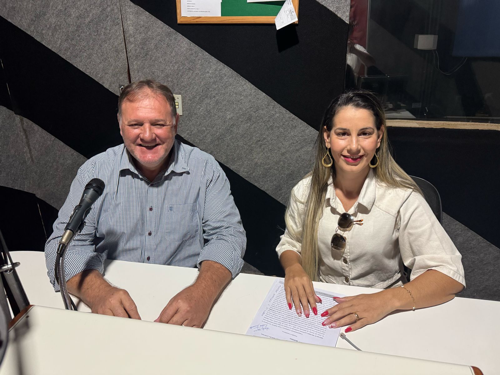 Nestaa sexta-feira, o prefeito de Curvelândia, Jadilson Alves, acompanhado da secretária de Educação, Zilda Xavier, esteve na rádio Conti FM para prestar esclarecimentos sobre o transporte escolar no município. A participação foi motivada por uma reclamação feita por uma mãe de aluno no programa do radialista Tadeu, a respeito das condições do transporte na comunidade Santa Luzia.