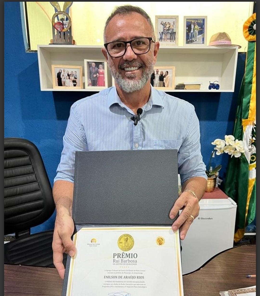 Além de ter as contas públicas de 2022 aprovadas pelo Tribunal de Contas, o Prefeito Enilson Rios, recebeu o PRÊMIO RUI BARBOSA DE GESTÃO DE QUALIDADE, através do Egrégio Tribunal de Contas do Estado de Mato Grosso.
