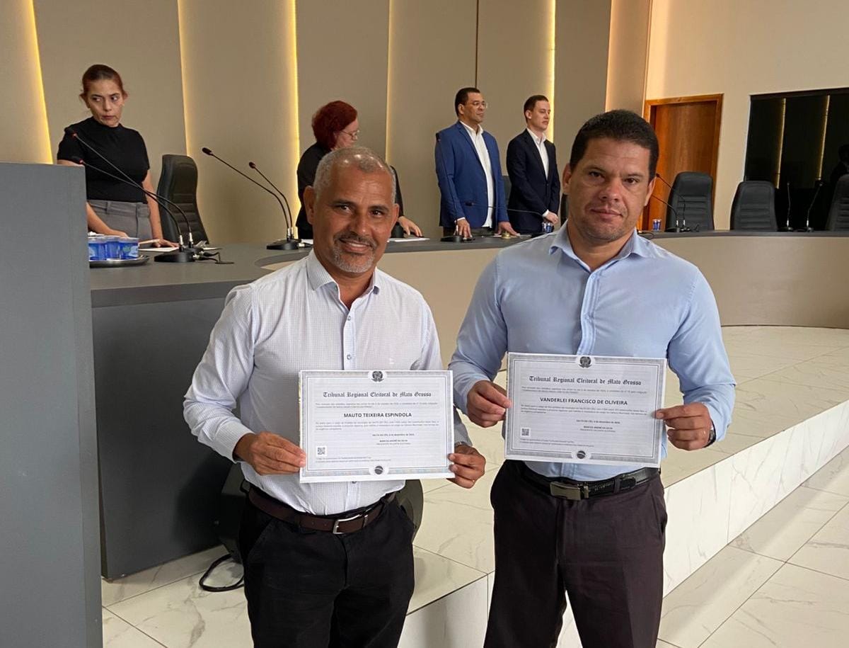 Nesta sexta-feira, 6 de dezembro, o Prefeito reeleito de Salto do Céu, Mauto Espindola, foi diplomado para mais um mandato, que terá início em 2025. A cerimônia foi realizada na Câmara Municipal de São José dos Quatro Marcos e marcou o reconhecimento oficial de sua reeleição. Mauto terá como vice-prefeito Vanderlei Francisco, reforçando a parceria administrativa para os próximos quatro anos.