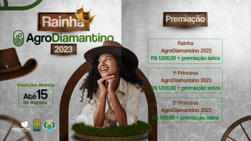 A Prefeitura de Diamantino, por meio da Secretaria Municipal Cultura e Turismo e de Assistência Social, Trabalho e Cidadania, abriu as inscrições para o concurso que escolhe a rainha, primeira e segunda princesa da AgroDiamantino 2023. As inscrições devem ser realizadas presencialmente na Secretaria Municipal de Assistência Social das 7h às 13h até o dia 15 de agosto.