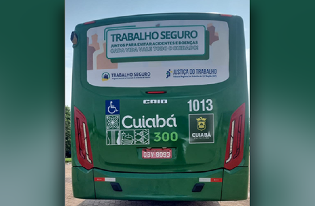 A Prefeitura de Cuiabá, por meio da Secretaria Municipal de Mobilidade Urbana (Semob), está apoiando uma importante iniciativa da Justiça do Trabalho em Mato Grosso para conscientizar a população sobre a prevenção de acidentes e doenças ocupacionais. A campanha educativa, intitulada “Juntos para evitar acidentes e doenças. Cada vida vale todo o cuidado!”, será divulgada ao longo de dezembro com mensagens estampadas nas traseiras dos ônibus. A ação faz parte do Programa Trabalho Seguro.