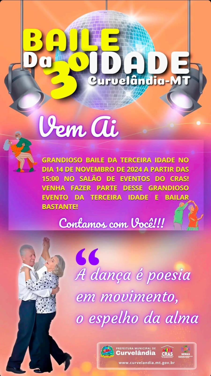 Prefeitura de Curvelândia e CRAS Promovem o Baile da 3ª Idade no Dia 14 de Novembro