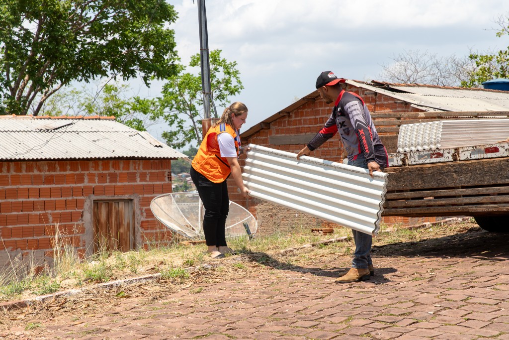 Ao todo, serão entregues mais de 300 telhas para 35 famílias que foram atingidas pelo forte vendaval com chuva em Diamantino.