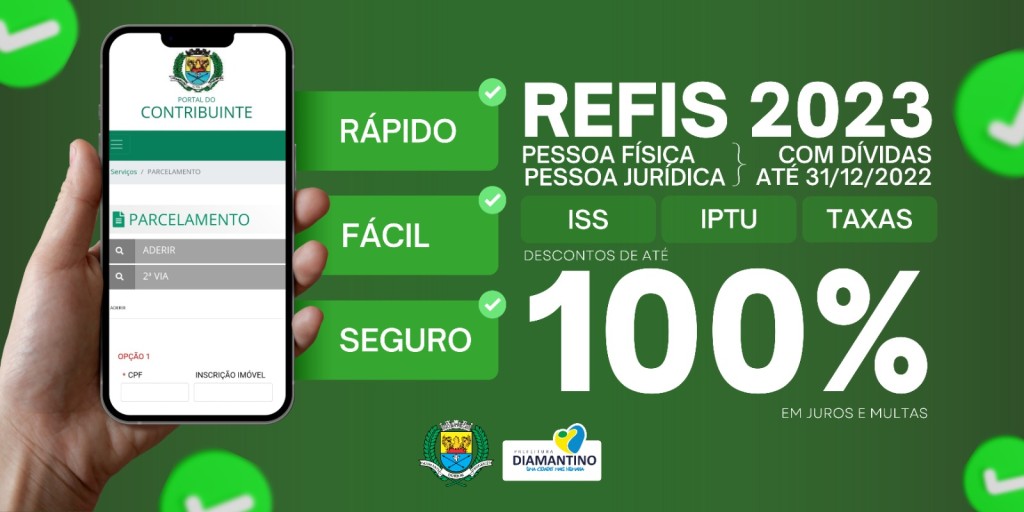 Para facilitar a renegociação das dívidas, o requerimento para adesão ao Refis pode ser feito pelo site da Prefeitura através do Portal do Contribuinte ou presencialmente no Setor de Tributos da Prefeitura de Diamantino ou através do telefone (65) 9. 9224-1432.