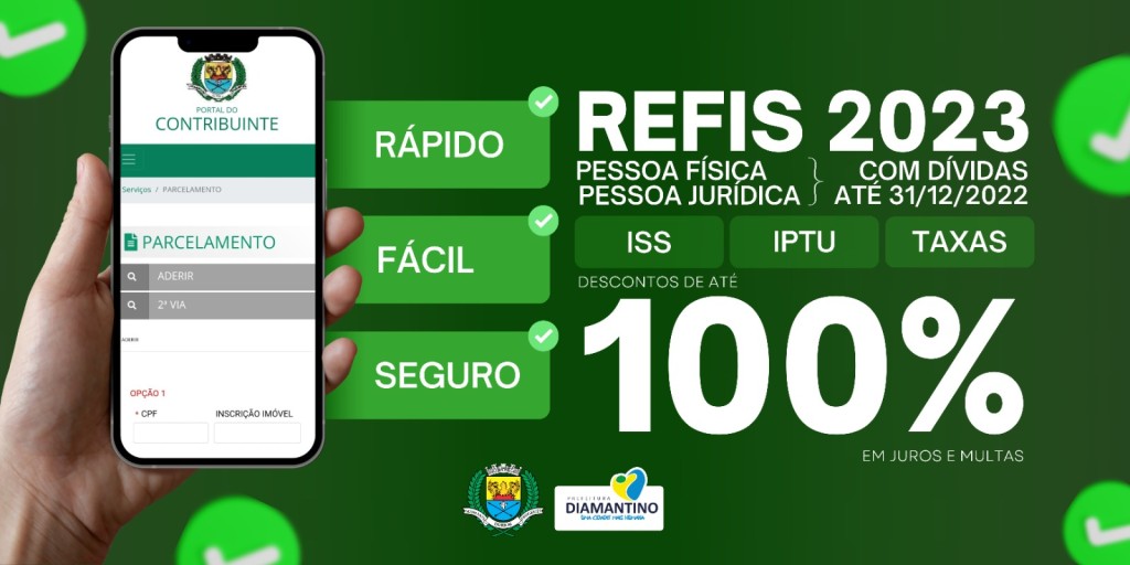 A Prefeitura de Diamantino, por meio da Secretaria de Fazenda, estendeu o prazo do Programa de Recuperação Fiscal (Refis) 2023, para que pessoas físicas ou jurídicas possam regularizar os débitos fiscais com o município, contribuindo dessa maneira para o crescimento da cidade quitando suas pendências. O prazo foi prorrogado até o dia 20 de dezembro.