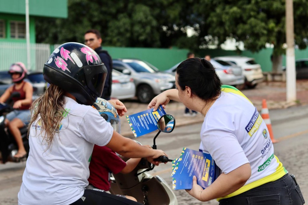 A ação aconteceu em frente à Prefeitura Municipal e levou informações importantes aos contribuintes, com a distribuição de materiais informativos e orientações sobre as formas de pagamento.