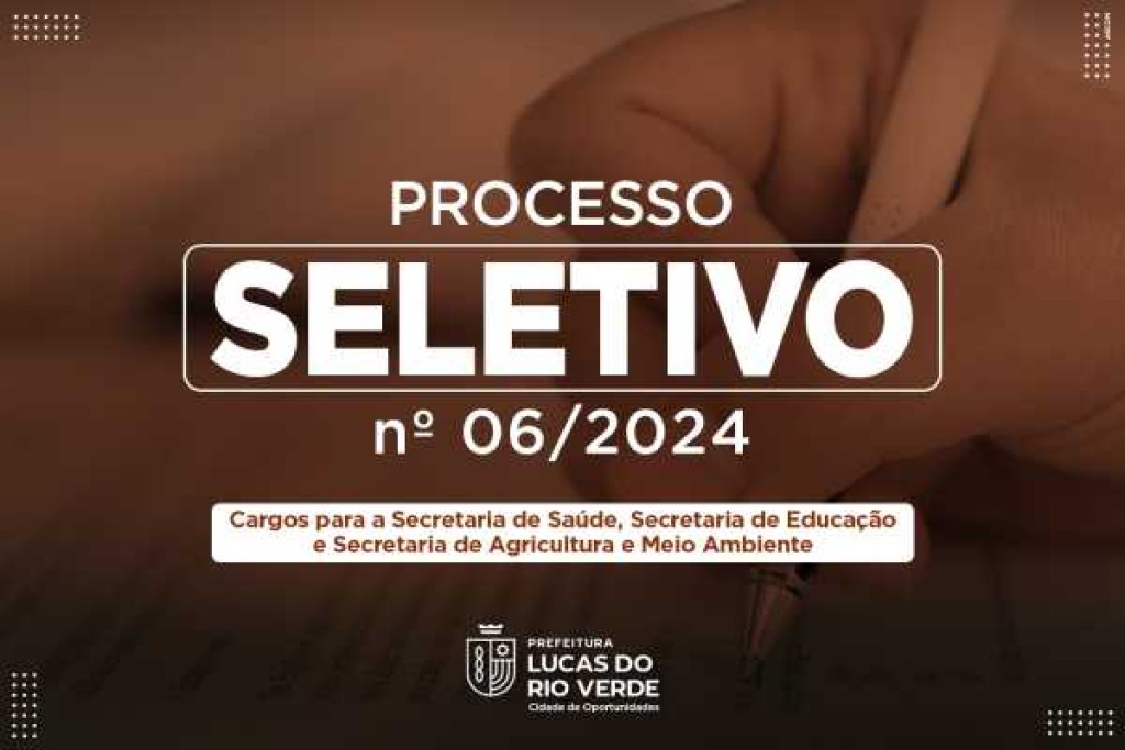 A Prefeitura de Lucas do Rio Verde homologou, nesta sexta-feira (05), o Processo Seletivo nº 06/2024. As oportunidades são para a Secretaria de Saúde, Secretaria de Educação e Secretaria de Agricultura e Meio Ambiente.