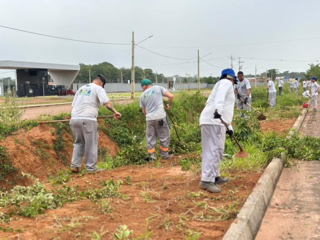Aedes aegypti). O trabalho de capinagem se concentra, nesta quinta-feira (22), no canteiro central da Avenida Integração.