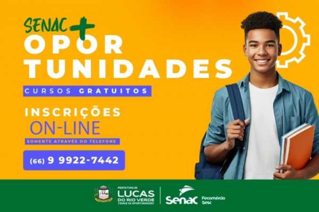 A Prefeitura de Lucas do Rio Verde, em parceria com o Senac, está com inscrições abertas para dois cursos gratuitos: Boas Práticas para Serviços de Alimentação e Assistente Financeiro. As aulas começam no dia 6 de abril de 2026 e serão realizadas no Senac de Lucas do Rio Verde, em períodos noturnos.