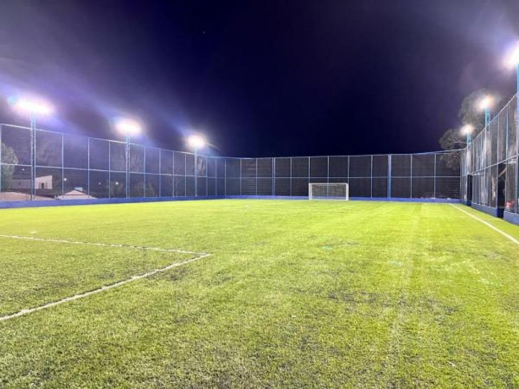 A nova área de lazer, conta com alambrados, iluminação em led de alta potência, gramado sintético e playground com piso emborrachado.