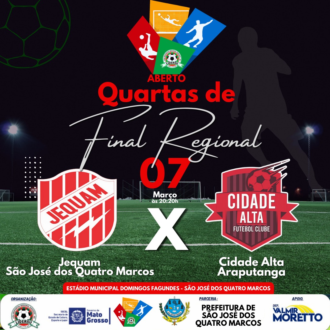 Às 20:20 horas, o jogo principal da noite coloca frente a frente Jequam de Quatro Marcos e Cidade Alta de Araputanga. Essa partida é decisiva e vale vaga na semifinal da competição, prometendo lances intensos e disputas acirradas.