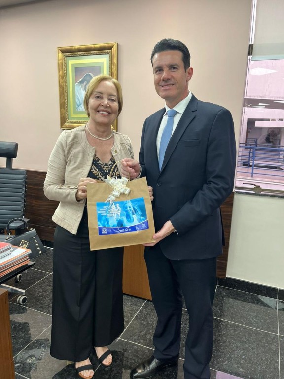 A presidente do Tribunal de Justiça de Mato Grosso (TJMT), desembargadora Clarice Claudino da Silva, recebeu o Kit 01 da 6ª Corrida do Judiciário, das mãos do desembargador Rodrigo Roberto Curvo, organizador do evento.