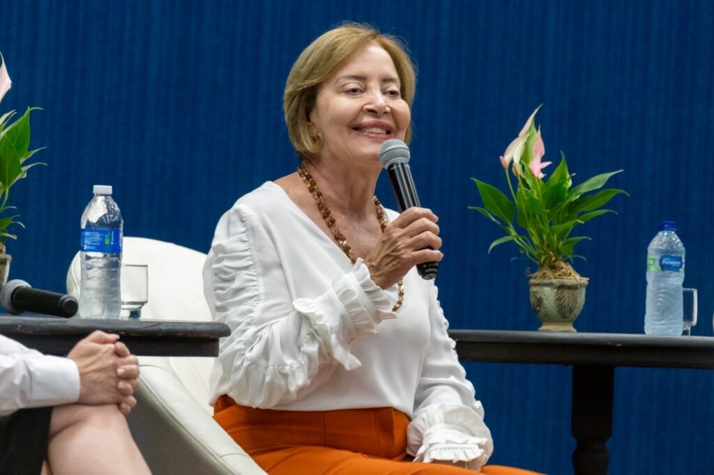 A presidente do TJMT, desembargadora Clarice Claudino da Silva discorreu durante sua fala no evento sobre as dificuldades e cobranças desproporcionais impostas às mulheres para que consigam reconhecimento em suas profissões.