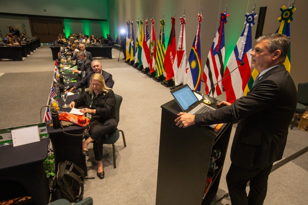 A presidente do TJMT, desembargadora Clarice Claudino da Silva, proferiu palavras de apoio ao presidente do TJ gaúcho. “Permanecemos em oração pela população gaúcha, desejando que o Estado do Rio Grande do Sul se restabeleça da melhor forma possível. Estamos aqui, unidos, para prestar a nossa solidariedade.”