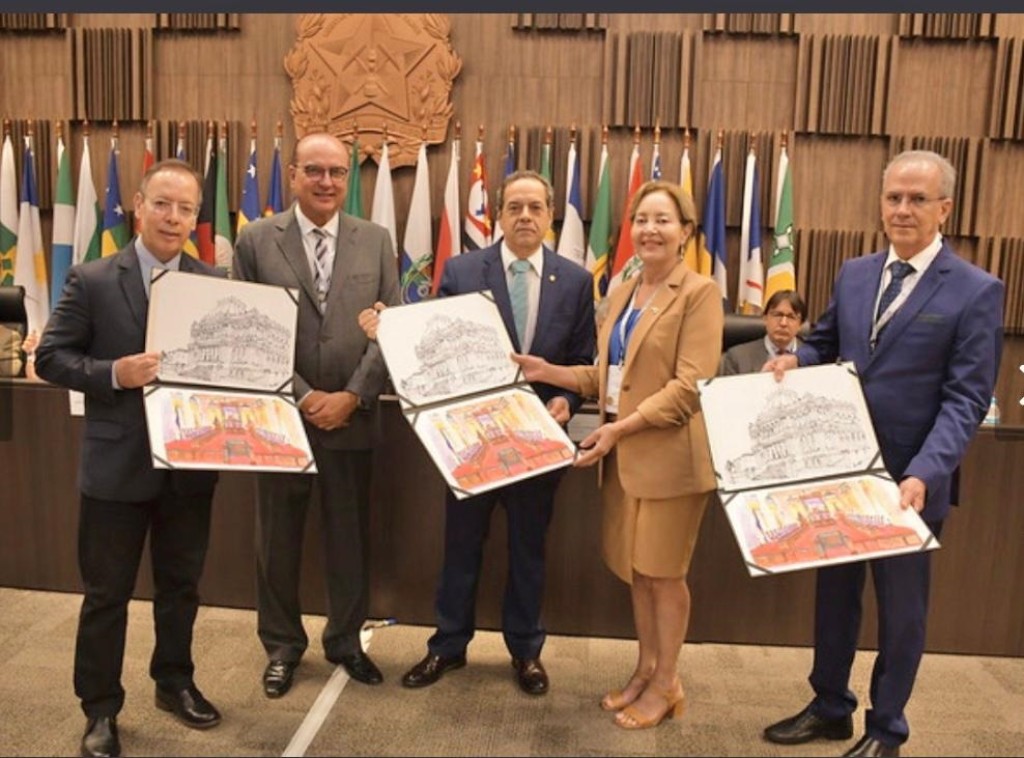 O presidente do Tribunal de Justiça de Minas Gerais (TJMG), desembargador José Arthur de Carvalho Pereira Filho, entregou aos colegas desembargadores e desembargadoras duas gravuras criadas pelo desembargador mineiro José Marcos Rodrigues Vieira, sendo uma delas executada em bico de pena, que retrata a fachada do Palácio da Justiça Rodrigues Campos, sede histórica do TJMG, e a outra em aquarela, com detalhes do salão da antiga Corte Superior mineira. O desembargador José Marcos Rodrigues Viera, autor das obras, participou da homenagem.