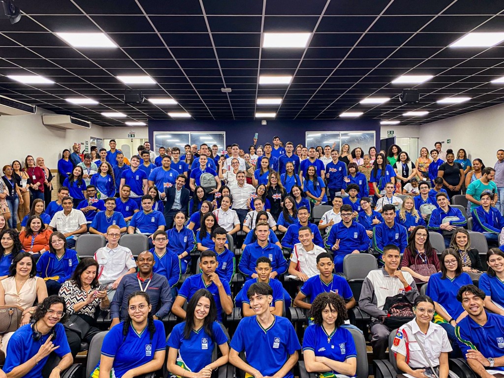 Prestes a embarcarem para a Inglaterra, os 100 estudantes da rede estadual de ensino de Mato Grosso beneficiados com o Programa Intercâmbio MT no Mundo se reuniram na Secretaria de Estado de Educação (Seduc-MT), nesta quinta-feira (24.08), receberam kits para a viagem e bateram um papo com professores e autoridades. A ação da pasta teve o objetivo de reforçar o apoio, o cuidado e o comprometimento com os alunos antes da viagem, nesta sexta-feira (25). Eles irão acompanhados por monitores certificados pelo governo britânico.