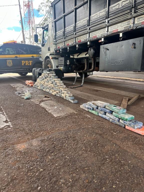 Durante uma fiscalização, em Rondonópolis (MT), a Polícia Rodoviária Federal (PRF) apreendeu mais de 100 kg de drogas e diversas munições de arma de fogo. A abordagem, realizada por volta das 10h00, desta segunda-feira (10/02), ocorreu após análise de risco e suspeita de tráfico de drogas em um veículo de carga marca Volvo.