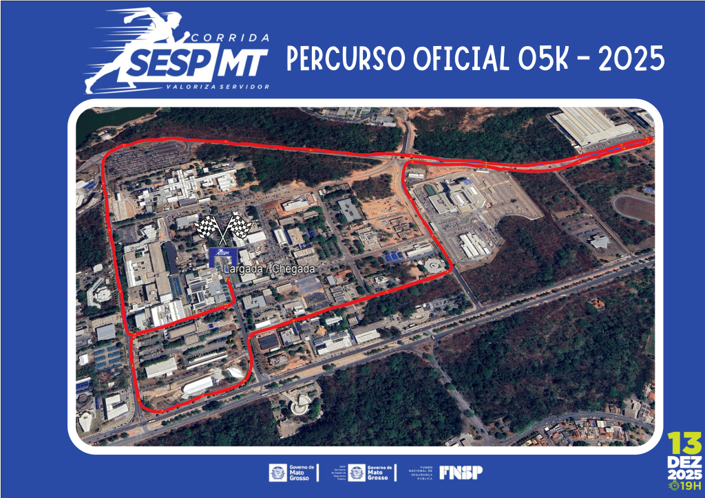 Neste sábado (13.12), acontecerá a corrida SESP-MT, a primeira prova de rua da Secretaria de Segurança Pública de Mato Grosso. A largada está prevista para às 19h, da frente da sede da Secretaria, no Centro Político Administrativo.
