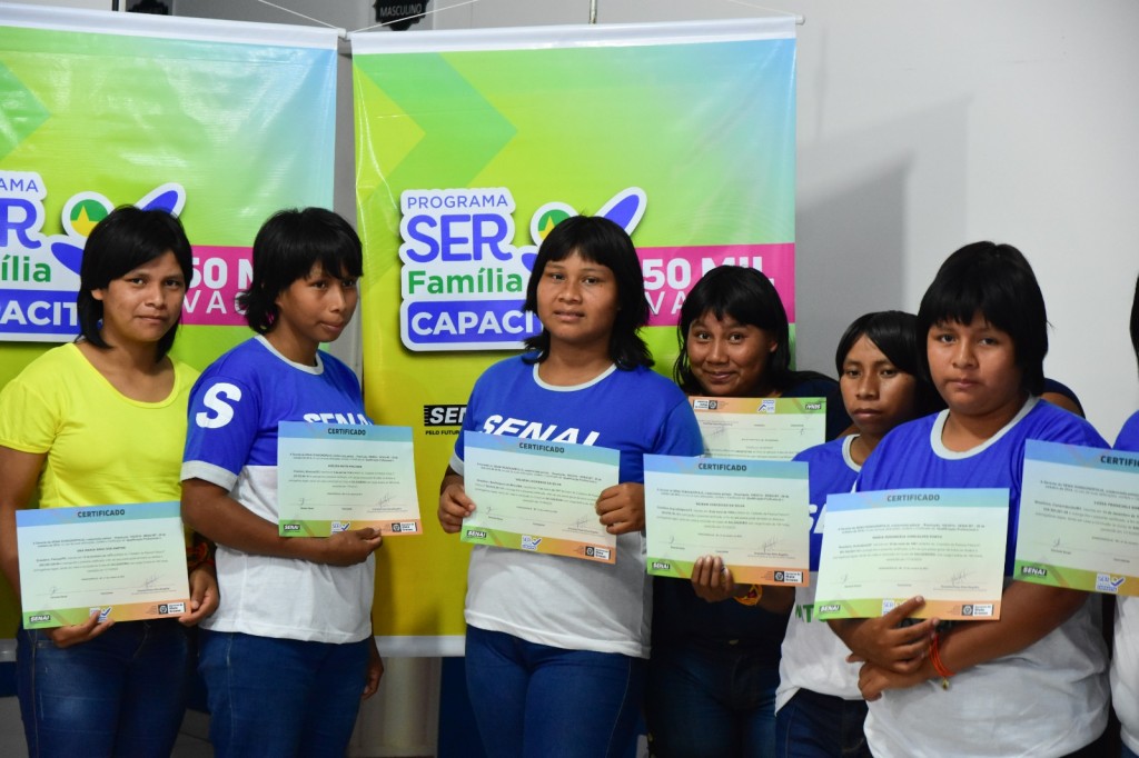 Em Campinápolis, município localizado a 550 km de Cuiabá, 29 alunos concluíram os cursos de costura industrial e de panificação e salgados, oferecidos pelo programa SER Família Capacita, idealizado pela primeira-dama de Mato Grosso, Virginia Mendes. Entre os formandos estão 16 mulheres indígenas. Os certificados foram entregues nessa terça-feira (07.11).