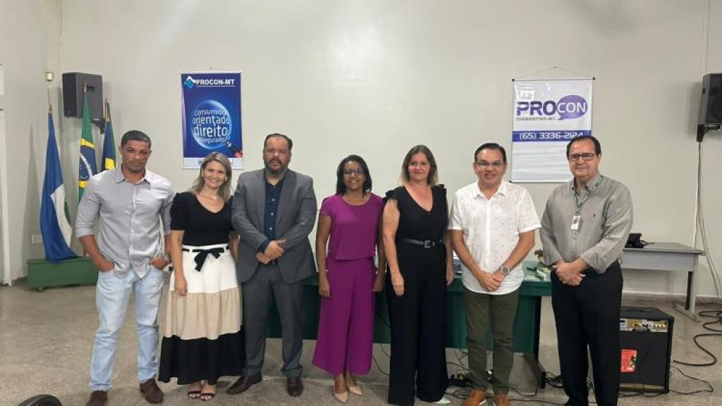 Participaram como palestrantes o coordenador de fiscalização e a conciliadora do Procon-MT, Vinícius Firmo e Gisela Simona, respectivamente, e o consultor de negócios da Federação de Associações Comerciais de Mato Grosso (Facmat), Pedro Carlos Ribeiro. O evento contou com a presença do prefeito de Diamantino, Dr. Manoel Loureiro, e dos secretários municipais de Assistência Social, Trabalho e Cidadania, Gilson Silva, e de Cultura e Turismo Caique Loureiro.