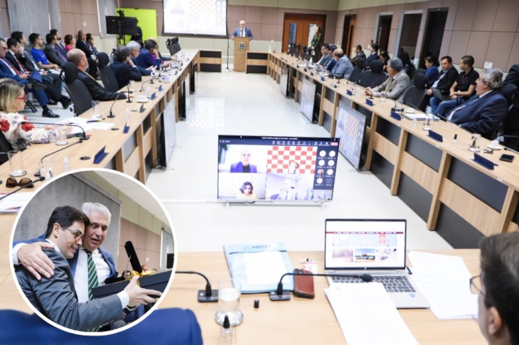 Na primeira reunião de 2024 do Colégio de Procuradores de Justiça do Ministério Público do Estado de Mato Grosso (MPMT), realizada nesta quinta-feira (1º), a instituição homenageou o procurador de Justiça aposentado Luiz Alberto Esteves Scaloppe pelos 43 anos de serviços prestados. O reconhecimento por todo o legado e dedicação foram externalizados em palavras de carinho e afeto, mensagens enviadas por instituições renomadas que atuam na Defesa do Meio Ambiente, entrega de uma placa e apresentação de um vídeo com registros da carreira no MPMT.