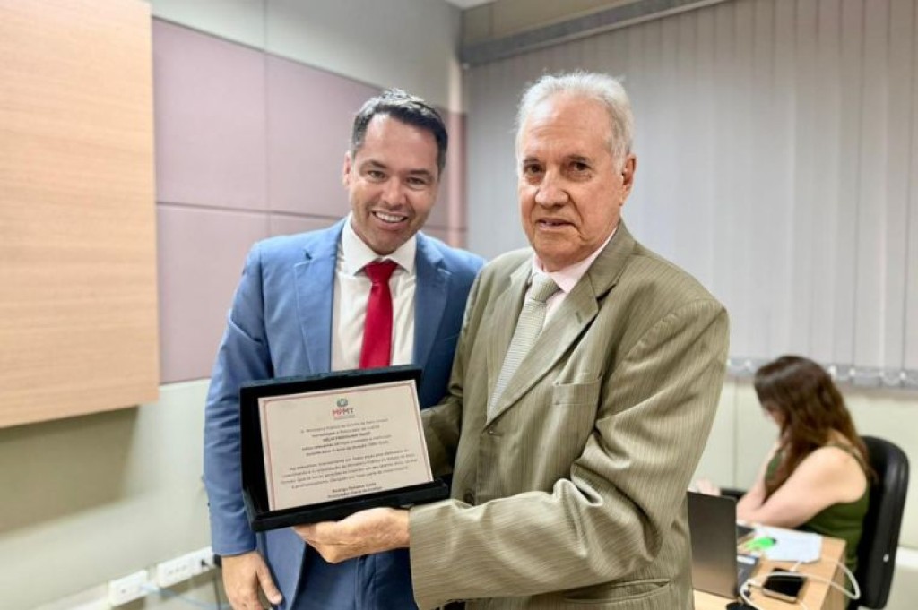 O Ministério Público de Mato Grosso (MPMT) prestou, nesta quinta-feira (5), uma homenagem ao procurador de Justiça Hélio Fredolino Faust, que se aposenta após quase quatro décadas de dedicação à instituição. A celebração ocorreu durante a reunião ordinária do Colégio de Procuradores de Justiça e foi marcada por depoimentos emocionados e reconhecimento coletivo à trajetória do membro que se tornou referência técnica e humana dentro do Ministério Público.Em discurso, o procurador-geral de Justiça, Rodrigo Fonseca Costa, enfatizou o papel fundamental exercido por Hélio ao longo de quase 40 anos de atuação, citando passagens por funções estratégicas, como a coordenação do Núcleo de Ações de Competência Originária (Naco), a atuação como procurador-geral adjunto, subprocurador-geral administrativo, integrante de comissões e de inúmeros órgãos deliberativos, além de sua participação recorrente no Conselho Superior do Ministério Público.Segundo o procurador-geral, a forma como o colega conduziu a Corregedoria se tornou um marco na instituição. “Sua liderança firme, mas sempre acolhedora, transformou a cultura correcional deste Ministério Público e nos ensinou que é possível ser exigente sem deixar de ser humano”, afirmou.O procurador de Justiça Paulo Roberto Jorge do Prado relembrou sua passagem por Sinop e destacou a importância do trabalho deixado na comarca. “Foi o primeiro promotor de Sinop. Muitas das suas peças me salvaram. Eu fui promotor em Sinop, garoto novo, com pouca experiência, e várias vezes tive que recorrer ao arquivo para consultar suas denúncias e memoriais”, relatou.Para o procurador de Justiça Mauro Benedito Pouso Curvo faltavam palavras para expressar a admiração e o respeito pelo colega. “O senhor é uma pessoa que a todos nós inspira”, declarou. Já a procuradora de Justiça Eliana Cícero de Sá Maranhão Ayres Campos destacou a amizade que construiu com Hélio e reforçou que ele deixa uma história significativa no Ministério Público. A procuradora de Justiça Esther Louise Asvolinsque Peixoto também prestou sua homenagem, dizendo que recebeu de Deus o privilégio de conhecê-lo e tê-lo como exemplo. “O senhor me deu exemplos que nunca vou esquecer”, afirmou.O procurador de Justiça Hélio Fredolino Faust, cuja trajetória é marcada por quase quatro décadas de serviços prestados ao Ministério Público de Mato Grosso, foi o primeiro promotor a atuar na comarca de Sinop, ele ajudou a estruturar a atuação ministerial na região e deixou contribuições que se tornaram referência para gerações de membros.O procurador ingressou na instituição em 1985, como promotor de Justiça em Sinop, e foi promovido por antiguidade para Diamantino (1987), Barra do Garças (1988) e, posteriormente, para Cuiabá, em 1990. Em 1997, alcançou o cargo de procurador de Justiça, consolidando-se como um dos nomes mais respeitados da carreira.