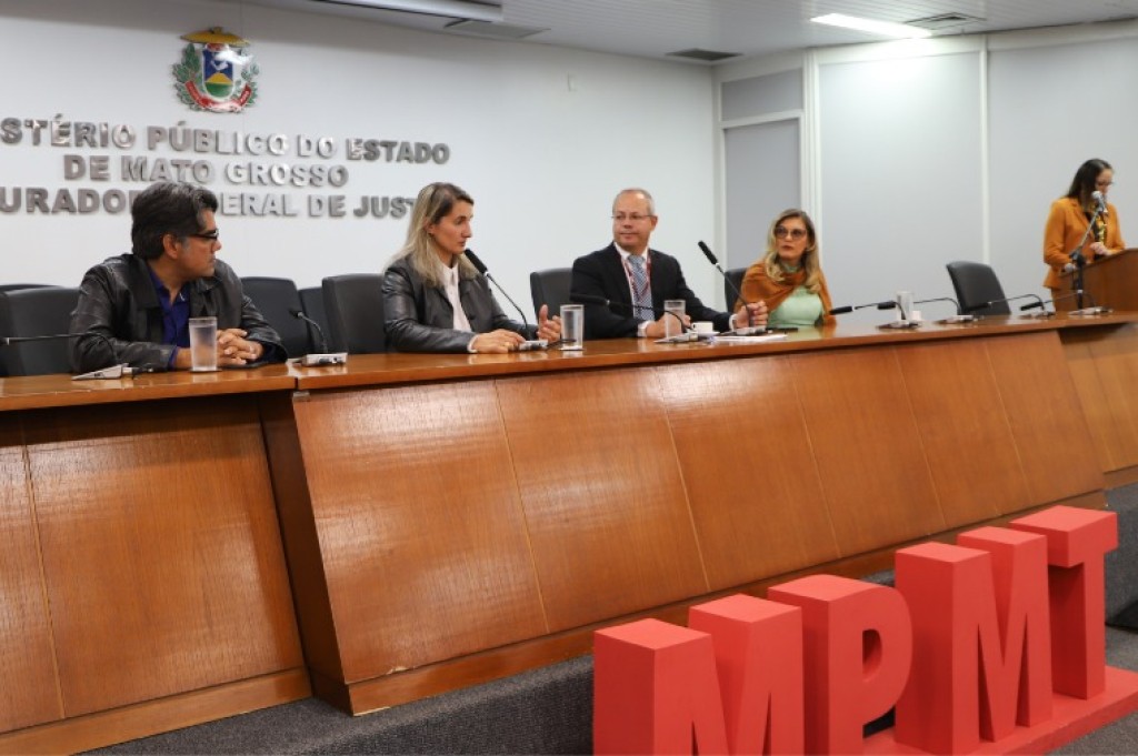 O evento contou com a participação de servidores da Setasc, do MPMT e de organizações de defesa dos direitos humanos, além do procurador de Justiça Alexandre de Mattos Guedes, da promotora de Justiça Elisamara Vodonós Portela, do Núcleo da Violência Doméstica, e do promotor de Justiça Francisco Gomes de Souza Júnior, do Gaeco.