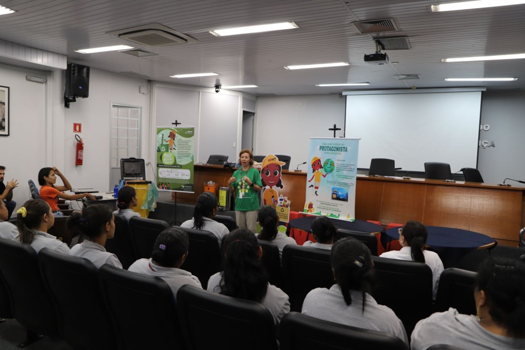 Nesta terça-feira (20), aproximadamente 60 colaboradores terceirizados, responsáveis pela limpeza e manutenção nos dois prédios, participaram de um momento de sensibilização. Durante o encontro, além de receber orientações sobre a forma correta de armazenar os resíduos, os participantes foram estimulados a refletir sobre a importância de atitudes sustentáveis.