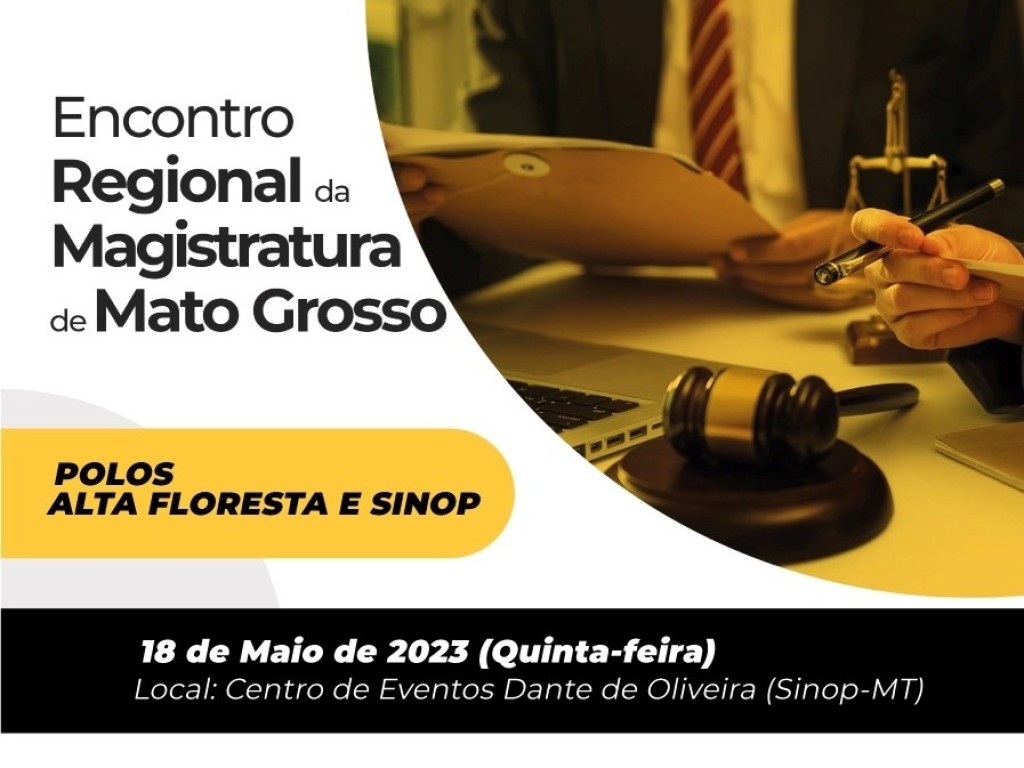 Atenção, comunidade de Alta Floresta, Sinop e região! Em 18 de maio, das 20h às 22h, o Poder Judiciário de Mato Grosso promoverá no Centro de Eventos Dante de Oliveira (Sinop) mais uma edição do Encontro Regional da Magistratura de Mato Grosso. O Encontro é uma das várias ações do Projeto Elo, que tem por objetivo aproximar o Judiciário da Sociedade. Além de desembargadores(as), juízes(as) e servidores do Judiciário mato-grossense, a ação é direcionada a membros e servidores do sistema de Justiça, estudantes e sociedade local. O evento é gratuito e não precisa de inscrições.