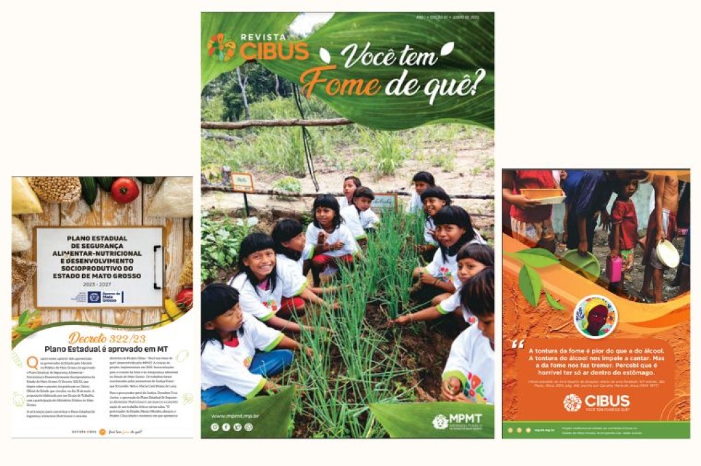 O Projeto Cibus – você tem fome de quê?, lançado pelo Ministério Público de Mato Grosso em fevereiro de 2022 com o objetivo de fomentar políticas de combate à fome e à insegurança alimentar no estado, encerra seu ciclo de implantação com o lançamento de uma revista. A publicação traça uma linha do tempo, mostrando desde os motivos para a criação do projeto – 33 milhões de brasileiros passando fome –, passando pela escolha dos municípios que receberiam as ações, a articulação junto ao Governo do Estado para criação do Plano Estadual de Segurança Alimentar-Nutricional, até a implantação de hortas.