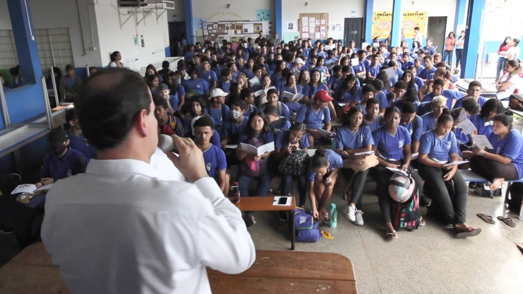 O projeto Nosso Judiciário, do Tribunal de Justiça de Mato Grosso (TJMT), realizou nesta sexta-feira (27), na Escola Estadual Professor Vanil Stabilito, no bairro Centro Sul, em Várzea Grande, uma palestra com 300 alunos do ensino fundamental e médio sobre como funcionam a Poder Judiciário de Mato Grosso. Os alunos receberam exemplares da cartilha como funciona, os ‘Juizados Especiais’.