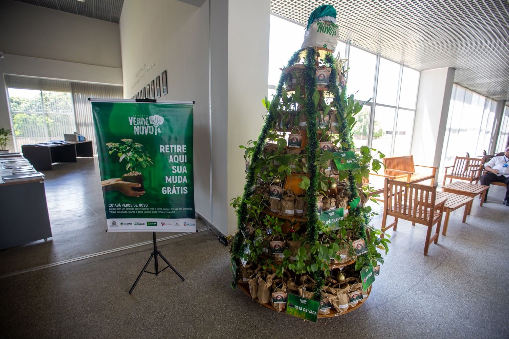 Em alusão as festividades de Natal, o Verde Novo decidiu inovar com a montagem de uma imensa ‘árvore de mudas’. A árvore que fez parte da agenda de inauguração do Complexo dos Juizados Especiais de Cuiabá ‘Desembargador José Silvério Gomes’, realizada na última semana, despertou a curiosidade de magistrados, servidores, convidados e participantes do evento.