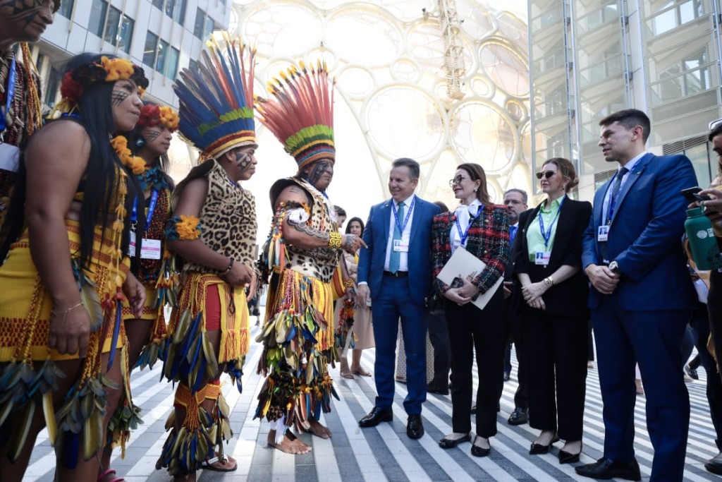 A comitiva pareci acompanha a delegação do Governo de Mato Grosso na COP 28, em Dubai, nos Emirados Árabes Unidos.
