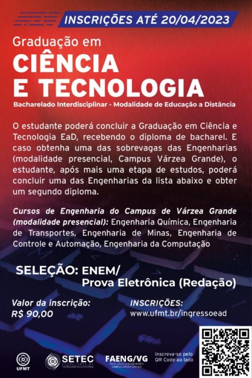 Heloneide Matos, coordenadora da Universidade Aberta do Brasil (UAB) em Sorriso, frisa que ao concluir o curso e com o diploma de bacharel em Ciência e Tecnologia em mãos, o estudante poderá tentar uma sobrevaga presencial e com mais um período de estudos se formar em qualquer outro campo da área da Engenharia ofertado no campus da UFMT de Várzea Grande no modelo presencial.
