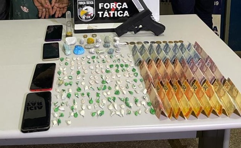 Quadrilha é presa com 176 porções de entorpecentes, dinheiro e simulacro de arma de fogo