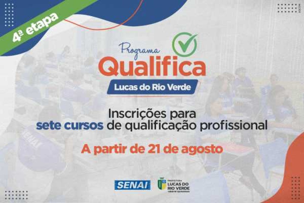 Começam na próxima segunda-feira (21) as inscrições para a 4ª etapa do Programa Qualifica Lucas. Desta vez, estão sendo ofertadas 120 vagas para sete cursos.