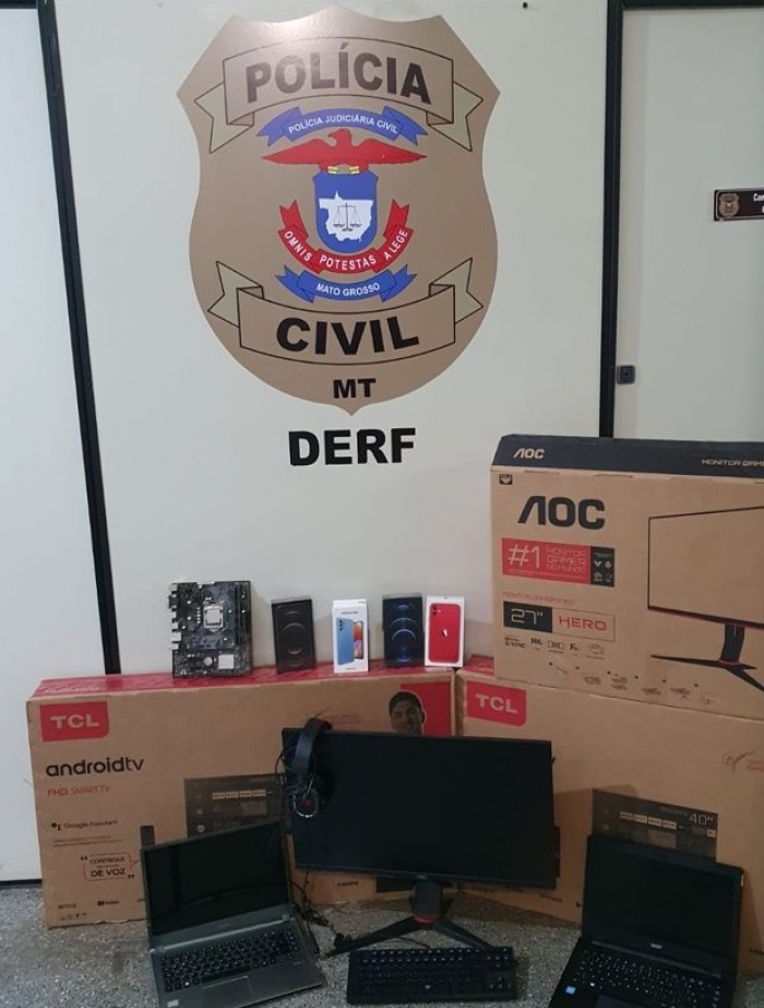 Um rapaz de 22 anos foi preso em flagrante pela Polícia Civil, nesta quinta-feira (26.08), em Cuiabá, por receptação qualificada. Com ele, os investigadores da Delegacia Especializada de Roubos e Furtos da Capital apreenderam televisores modelo smart e telefones celulares adquiridos por meio de golpes virtuais.
