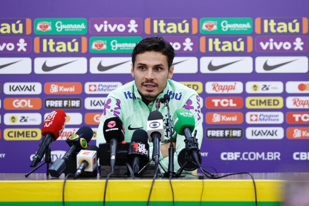 O meia-atacante Raphael Veiga celebrou a oportunidade de vestir a camisa da Seleção Brasileira, na entrevista coletiva desta terça-feira (21.03). O jogador vive a expectativa de entrar em campo no amistoso do Brasil com o Marrocos, no sábado (25), às 19 horas, no estádio Ibn Batouta, em Tânger.