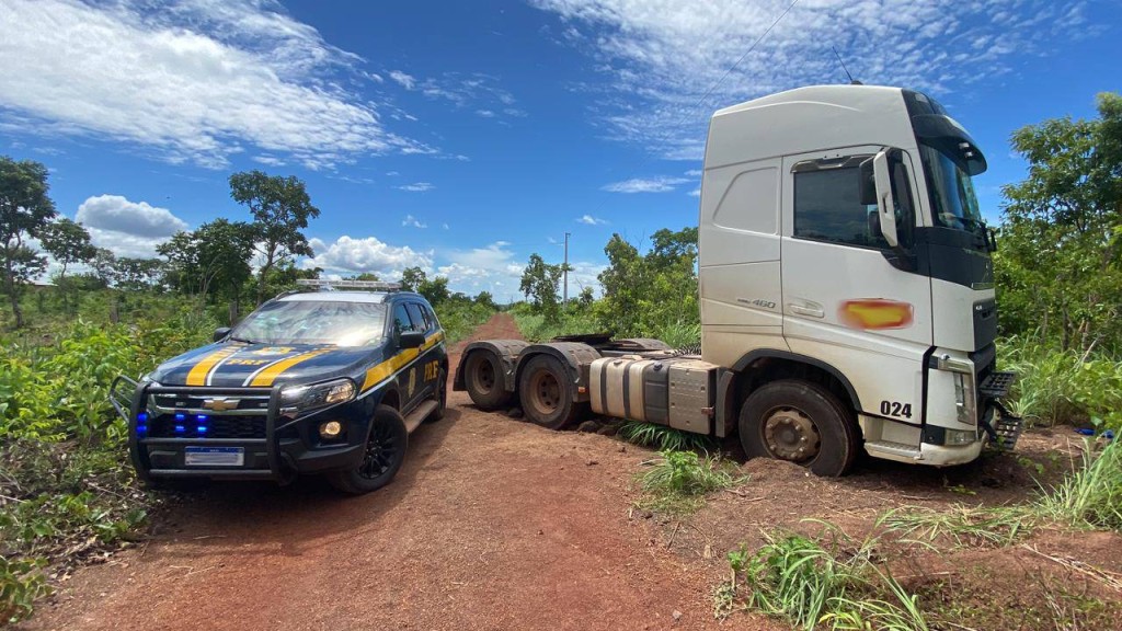 Ao chegar no local, em Jangada-MT, os policiais avistaram parcialmente dentro do matagal um caminhão trator, de cor branca.