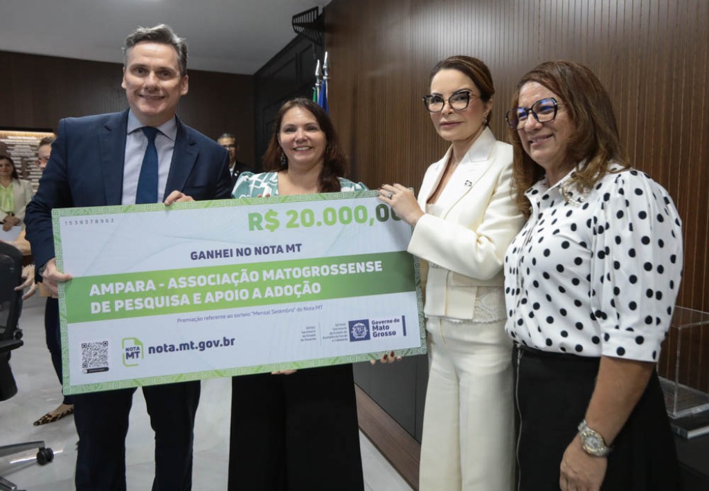 O Governo de Mato Grosso entregou, nesta quinta-feira (23.11), à Associação Mato-grossense de Pesquisa e Apoio à Adoção (Ampara) e à Associação de Amigos da Criança com Câncer (AACC) dois cheques simbólicos de R$ 20 mil referentes ao programa Nota MT. O valor corresponde a 20% dos prêmios de R$ 100 mil do sorteio Mensal Setembro.