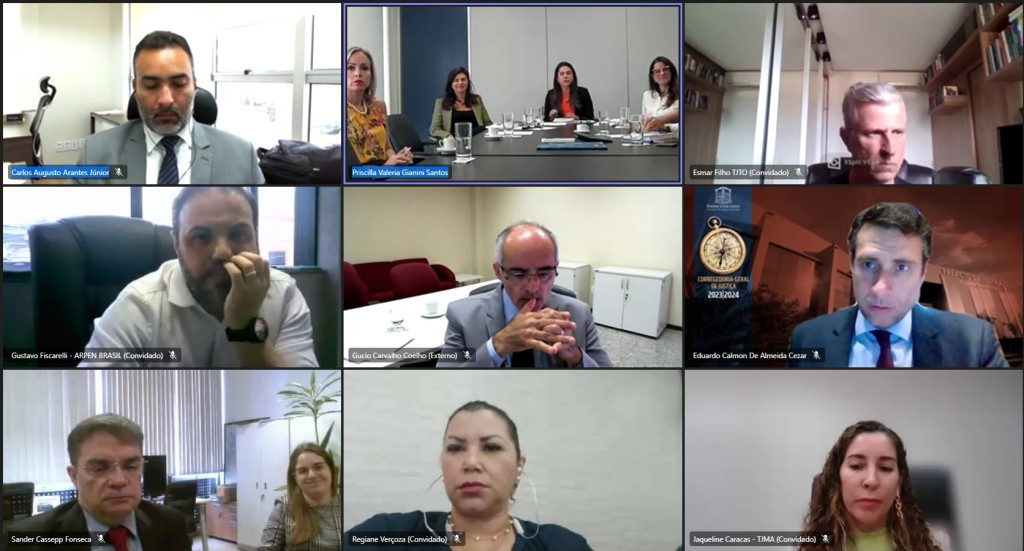 #Paratodosverem. Esta matéria possui recursos de texto alternativo para promover a inclusão das pessoas com deficiência visual. Primeira imagem: Print de tela da reunião que contou com representantes da Corregedoria Nacional de Justiça e corregedorias de Justiça dos estados.