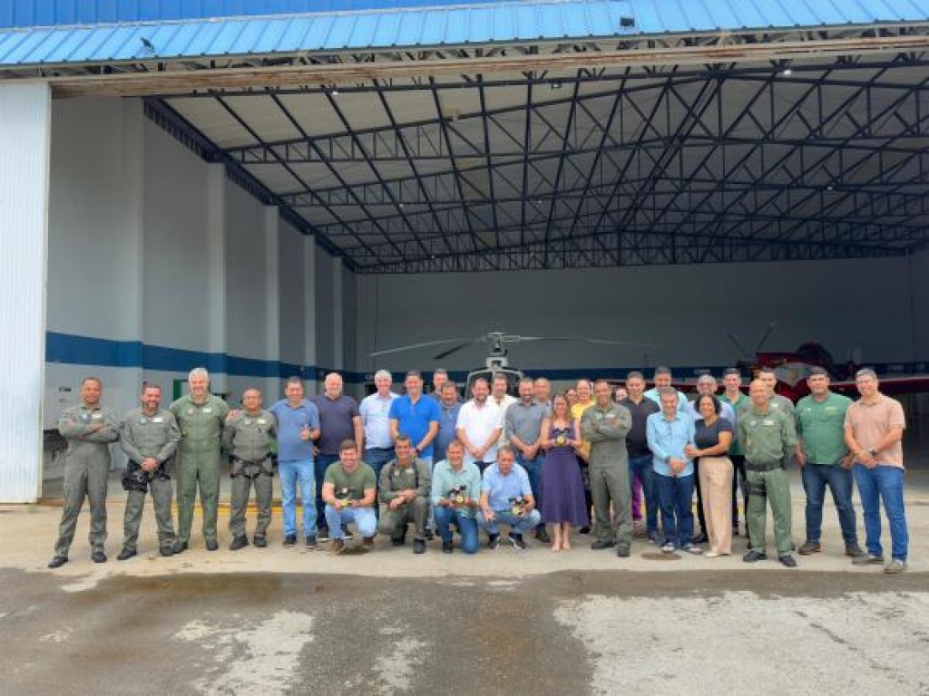 A secretária de Assistência Social e primeira-dama de Sorriso, Jucélia Ferro, e o vice-prefeito Gerson Bicego participaram, na manhã desta quarta-feira (13 de novembro), de um café da manhã, com entrega de mimos, na base descentralizada do Centro Integrado de Operações Aéreas (CIOPAer) de Sorriso.