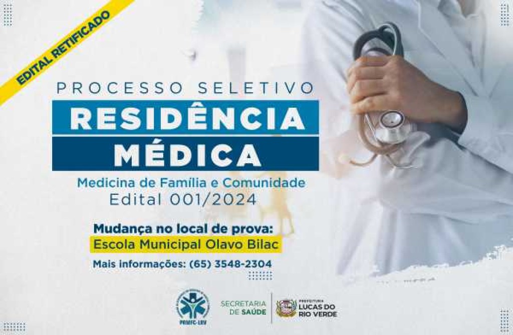 A Prefeitura de Lucas do Rio Verde realiza no próximo domingo (19), a prova do processo seletivo para a Residência Médica em Medicina de Família e Comunidade.