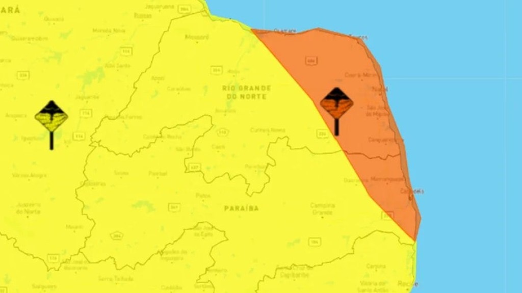 Segundo o instituto, um alerta laranja – de perigo – abrange cerca de 70 municípios potiguares, mais próximos ao litoral Leste potiguar, incluindo a capital, Natal. O aviso começou que começou às 10h desta sexta-feira (3) prevê chuvas de até 100 mm por dia e ventos intensos, entre 60 100 km por hora. Há risco de corte de energia elétrica, queda de galhos de árvores, alagamentos e de descargas elétricas.