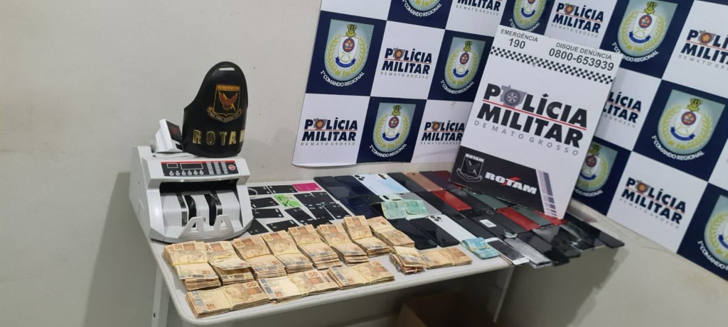 As equipes entraram no local e identificaram várias cédulas espalhadas em cima da mesa de sinuca. Os policiais ainda recolheram celulares, uma máquina de contar dinheiro e um caderno com anotações de supostas vítimas de estelionato.
