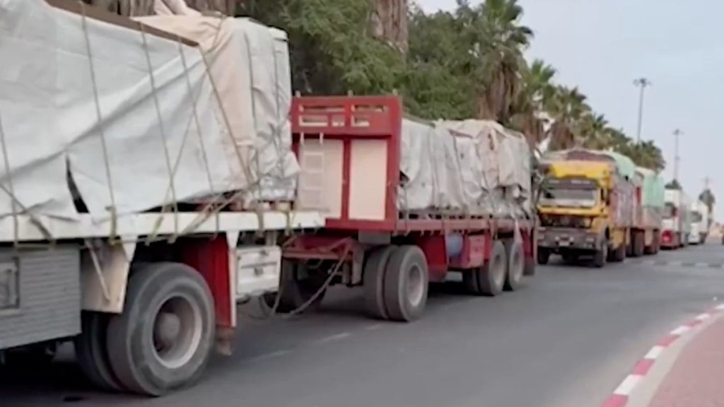 Caminhões de ajuda humanitária em Gaza durante cessar-fogo temporário