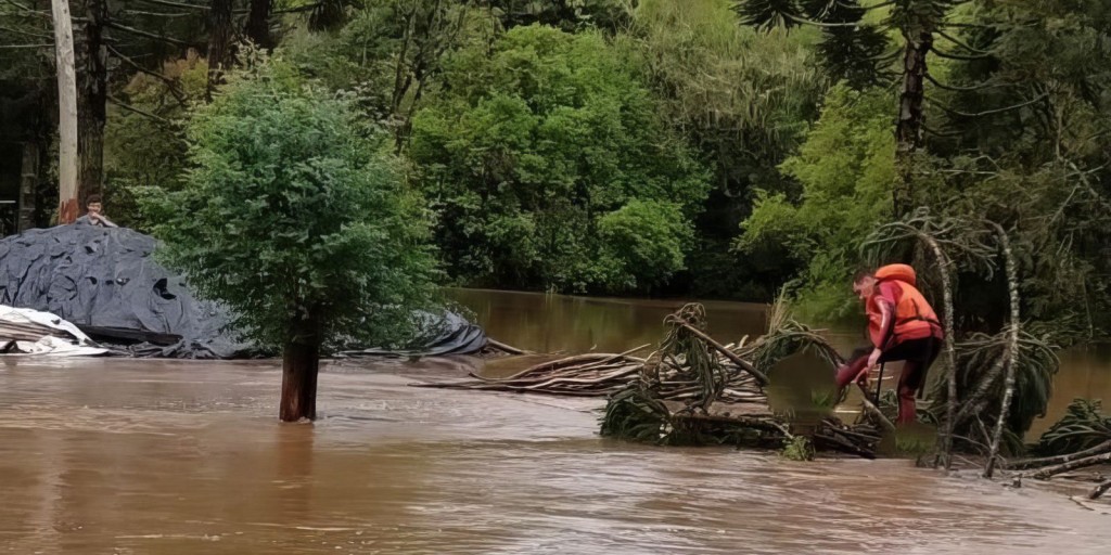 Em Capinzal (SC), uma cratera se abriu na área urbana da cidade e engoliu uma casa por inteiro. No mesmo município, ao menos 12 crianças foram resgatadas de um ônibus escolar que ficou ilhado em meio à enxurrada.
