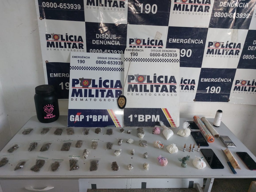 Os policiais foram até o local e encontraram diversas porções de drogas escondidas dentro de um travesseiro. Durante a ocorrência, a mãe de um dos suspeitos avançou sobre o filho, desferindo tapas, socos e arranhões.