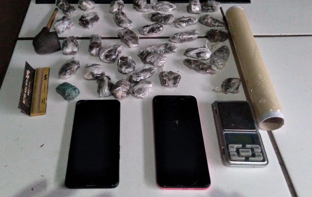 Durante as buscas foram apreendidos 14 aparelhos celulares, carregadores, chips, além de porções de maconha e cocaína, balanças de precisão, simulacro de arma de fogo, joias, dinheiro, cadernos com anotações e adesivos alusivos à organização criminosa.