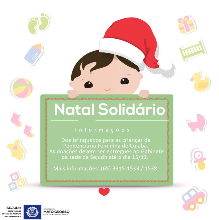Ajudar uma criança, uma mãe, uma família. Este é o objetivo da Secretaria de Estado de Justiça e Direitos Humanos (Sejudh), que está arrecadando brinquedos para os filhos das mulheres que estão detidas na Penitenciária Feminina de Cuiabá “Ana Maria Couto May”, por meio da campanha “Natal Solidário”. Qualquer servidor pode fazer a doação até o dia 15 de novembro.